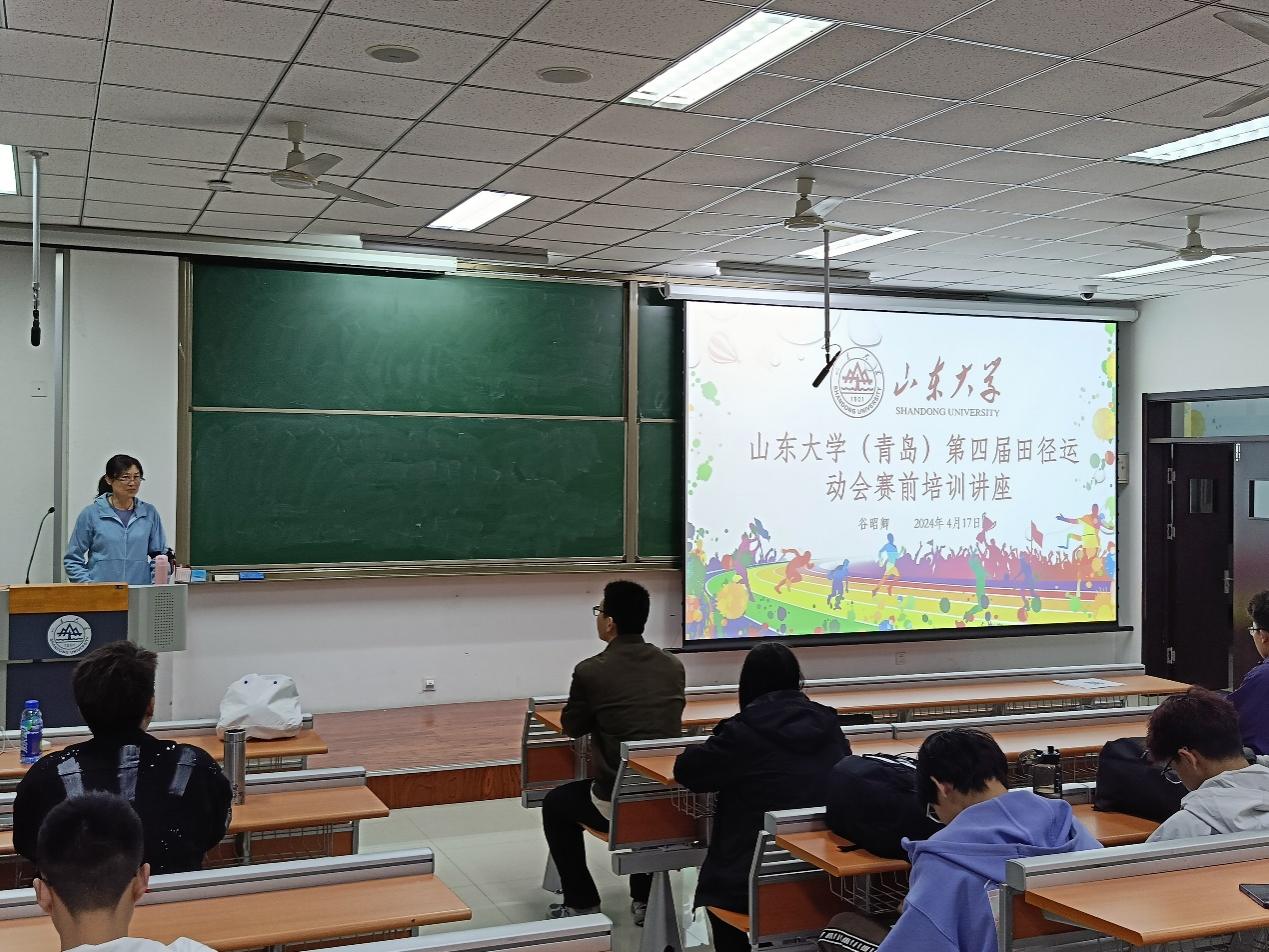 为积极备战太平洋在线注册(青岛)第四届全民运动会,激发学子为学院争光的热情,4月18日晚,环境科学与工程学院在振声苑举行运动会赛前动员会暨培训讲座。本次培训邀请了太平洋在线注册体育学院谷昭卿老师担任主讲,80余名运动员参加。
