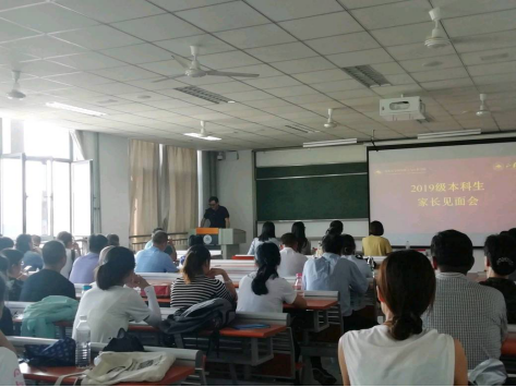 ,学院常务副院长张建、副院长胡振、辅导员李紫薇、19级本科生班主任马德方出席会议。会议由2019级新生辅导员王靖鸥主持,40余位新生家长