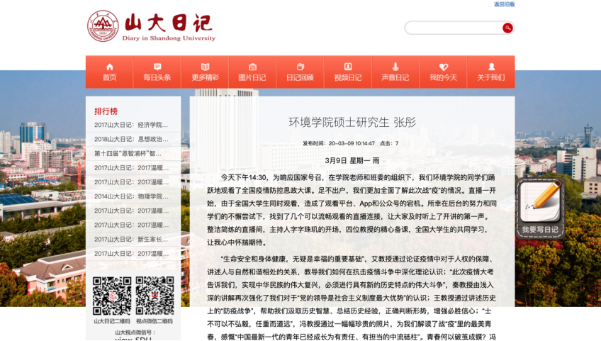 部分同学通过山大日记分享学习心得。