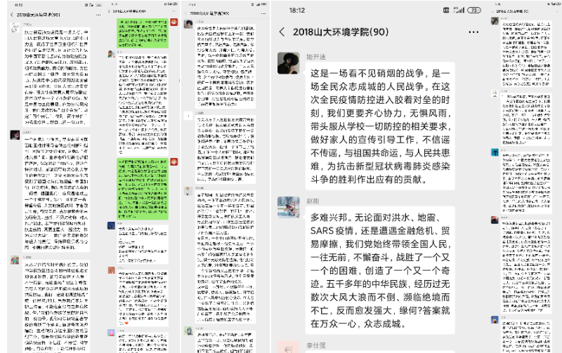 2017级研究生李敦杰:突如其来的疫情严重影响了每个人的生活,没有人能置身事外,独善其身。痛定思痛,深刻反思。实现中华民族伟大复兴,中华民族就在这样的考验中艰难前行,中华民族从磨难中奋起。疫情防控关系每个人生命健康,关系社会经济发展,关系整个命运共同体。因为中国共产党的集中领导和广大医护人员的无私奉献,中国及时遏制住疫情蔓延。只要坚定信心,同舟共济,精准施策,我们就一定能打赢疫情防控阻击战。没有一个冬天不可逾越,没有一个春天不会来临,静待春暖花开!