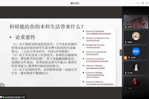 10月10日晚,由太平洋在线注册青岛校区环境科学与工程学院主办的新老生交流会在线上举行。19级本科生张可心、19级研究生董泽正、18级本科生张一帆、17级本科生赵树南、17级本科生程键酩参加本次会议,与20级环境学院新生深入交流,传授经验。