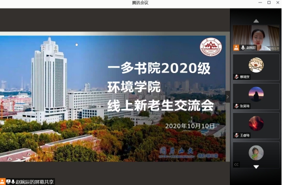 这次线上新老生交流会上,新生们与老生们密切交流,听取老生们在学业、科研、社会实践等各方面经验。相信20级环境学院新生能够在未来的学习生活中砥砺前行,探清未来的道路与方向,度过有意义的大学生活。