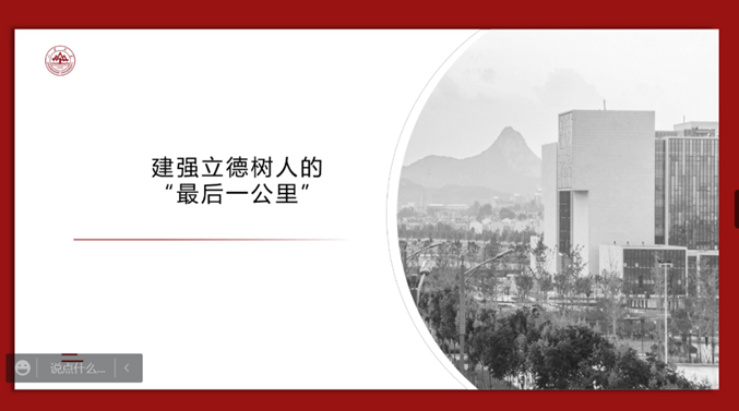 桑伟林以建强立德树人的最后一公里为题,全面阐述了专业教师三全育人的定位,从本科生全员导师制、本科生班主任制、本科生学业发展指导、研究生创新能力提升、学业职业能力提升、体育美育全面发展等方面对学院三全育人工作体系进行了解读。针对学生就业就业形势和现有问题,从制定明确就业目标、合理规划学业生涯、专任教师引导帮扶等方面提出了建议。