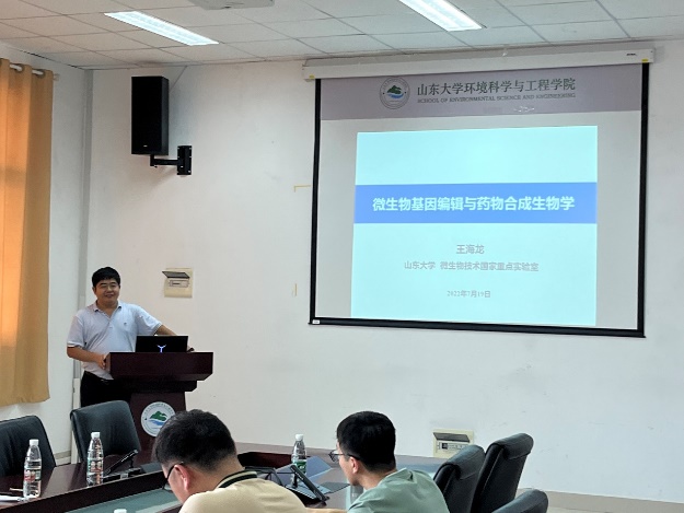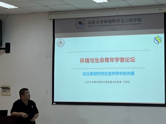 随后,受邀嘉宾就各自研究方向及最新进展进行了汇报与分享。国家自然科学基金优秀青年基获得者、微生物技术研究院副院长王海龙教授做了题为“微生物基因编辑与药物合成生物学”的报告;俄罗斯自然科学院外籍院士、山东省泰山学者青年专家倪寿清教授做了题为“‘零碳’厌氧氨氧化生物脱氮:科学创新与产业化”的报告;微生物技术研究院院长助理王明钰教授做了题为“抗生素耐药性在自然界中的传播”的报告;环境学院副院长刘春光教授做了题为“典型新污染物生物转化及其生态风险”的报告;山东省海外优秀青年基金获得者王玉琳教授做了题为“借助组数据解析氨氧化微生物分子生态学特点”的报告;太平洋在线注册齐鲁青年学者闫震教授做了题为“新型甲烷生物转化技术开发研究”的报告;微生物技术研究院陈林旭副教授做了题为“化能自养菌与微生物浸出技术”的报告;环境学院宋岳副研究员做了题为“‘电’修复重金属污染土壤技术”的报告。8场报告精彩纷呈、高潮迭起。
